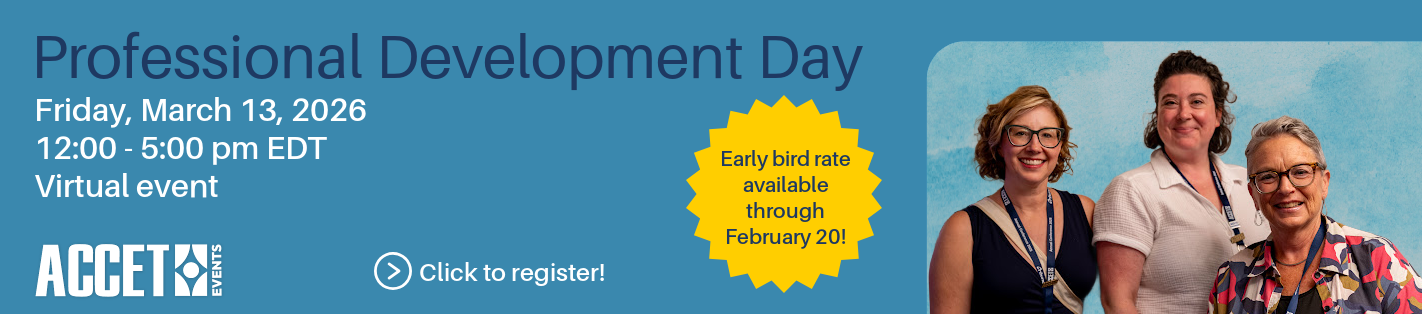ACCET is pleased to provide professional development opportunities to our members through Professional Development Days. These virtual events bring together faculty and staff from member institutions to foster professional growth, share best practices, and enhance our commitment to excellence in education. See the table below for details on upcoming Professional Development Days.